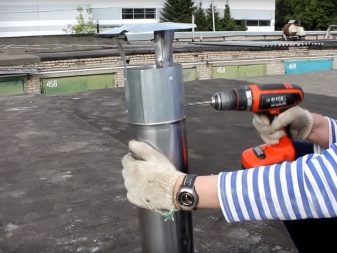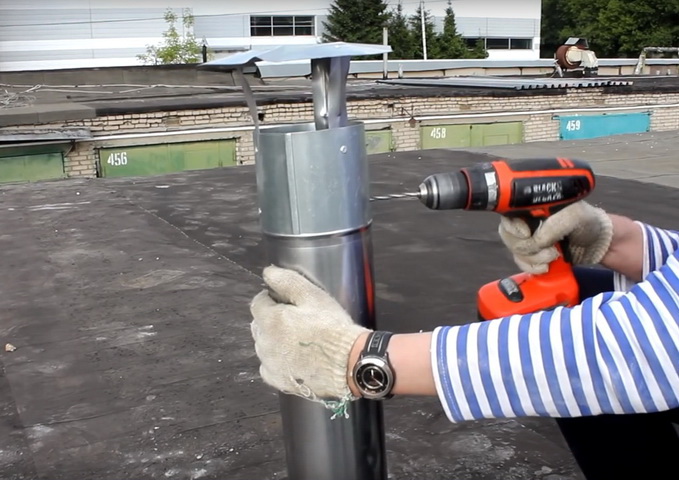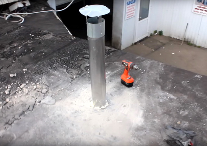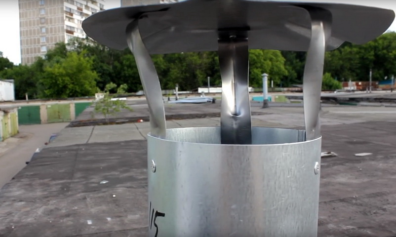 - The outlet pipe must be protected from moisture. To do this, create a special fungus made of metal or other durable material that prevents the ingress of rain and other precipitates inside.