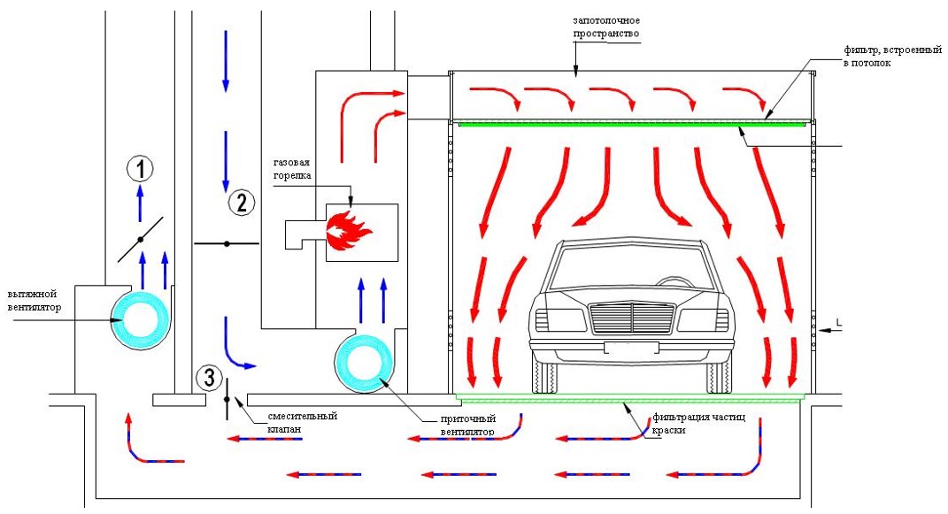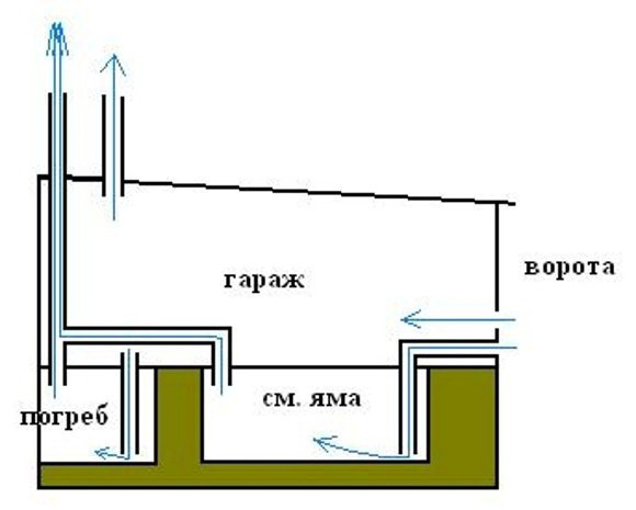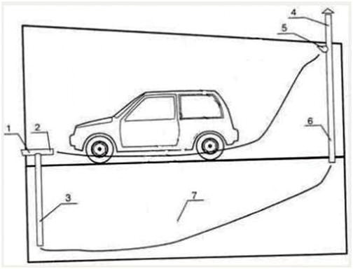 The air is supplied through the channels through the holes that were made in the floor or in the walls in a place as close as possible to the floor. These holes are also present in the viewing pit. The exhaust air is carried out through the exhaust pipe, which is installed quite powerful fan.