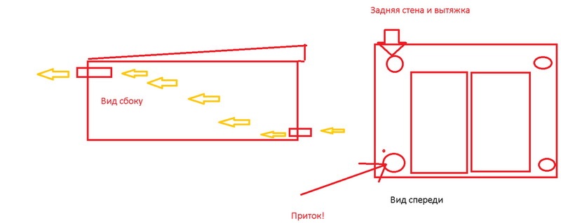 - it is necessary that the opening for the inflow was 2 times larger than for the exhaust.