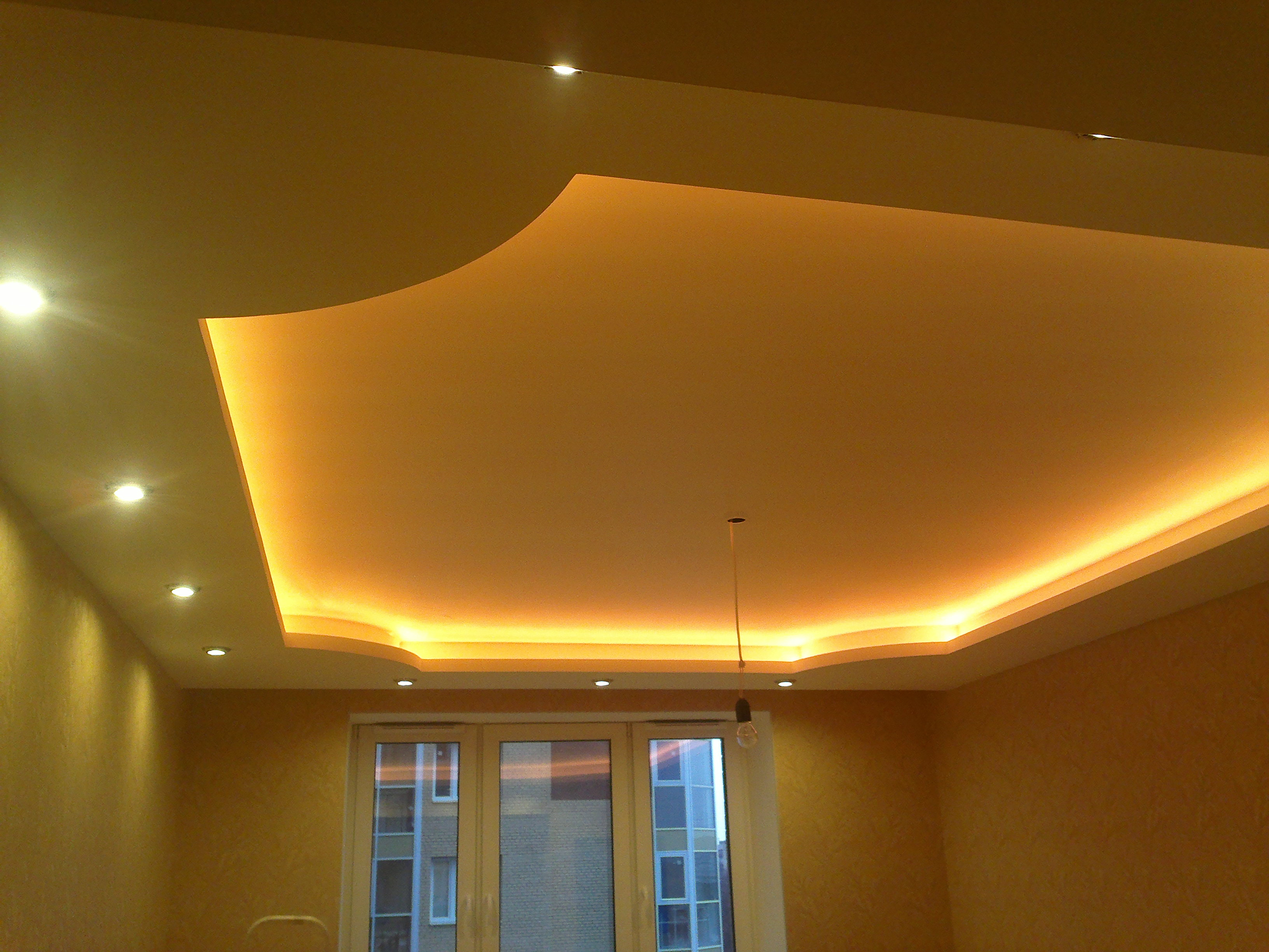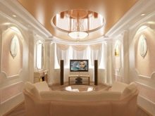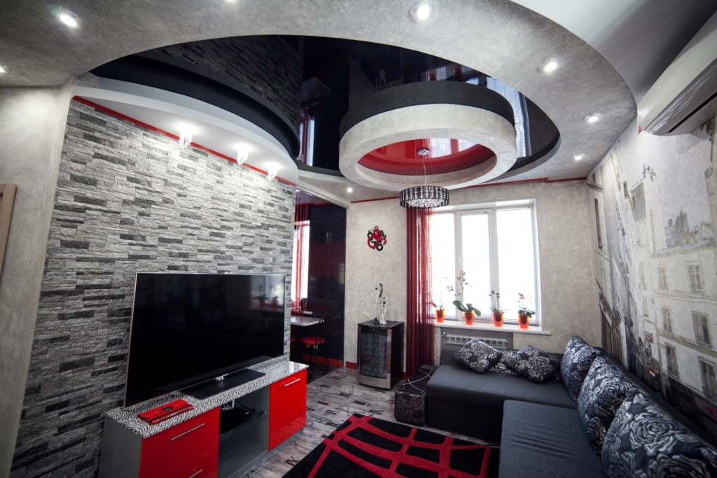 Constructions that have two tiers add volume to the room or change its appearance, add refinement to the interior. With the help of sharp differences in height, smooth areas you can achieve an extraordinary appearance.