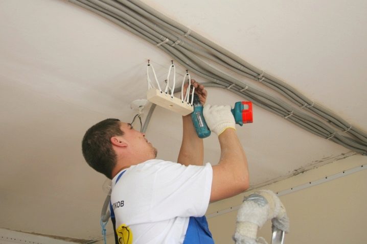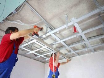 The choice of fasteners is dictated by the material in which they must enter. The key CD profile is fixed in 600 mm increments, unless there is no reason to change this distance. But the suspensions should not be spread further than 0.5 m. The ends of the mounted suspensions need to be bent to get a shape like the letter P. The electrical wiring is placed in a corrugated plastic pipe. It also relies to fasten thoroughly with clips.