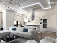 Ceilings are of two types: single-level and multi-level. The first option is suitable for small rooms with low and even ceilings. The second type looks good in large rooms.