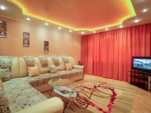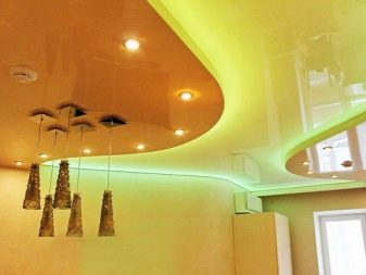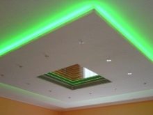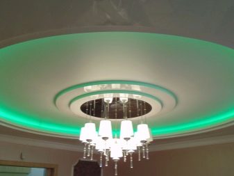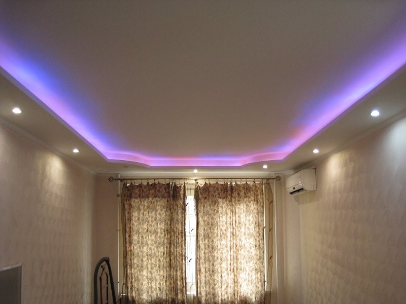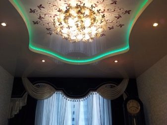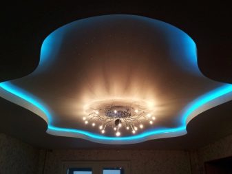 Before deciding in favor of a two-tier ceiling, you should consider the loss of space of 10-15 cm. Small Khrushchev can not afford complex structures. But with the help of diverse backlights you can beautifully beat even a uniform surface.