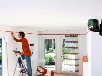 Ceiling installation begins with a markup, which is produced using a laser or hydro level, using a pre-prepared sketch. Calculates the distance from the floor, as well as the height and dimensions of the structure itself. The array of each tier is calculated separately. The level is determined in the room the lowest angle. Then a dividing line is drawn along the perimeter with a paint yarn, marking of the first level is made. At this stage, the calculation is made and the presence of lighting fixtures is noted.