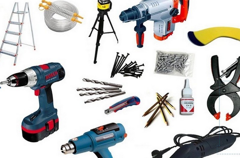In addition to building materials, the work will require a perforator, a Bulgarian, a screwdriver, as well as a stationery knife, level, tape measure, metal scissors and a stepladder.