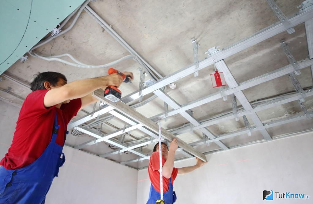 - under the gypsum plasterboard, the irregularities of the ceiling are hidden, thanks to which it will not be necessary to level the surface scrupulously;