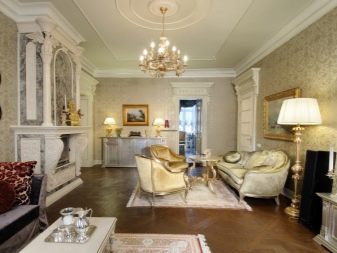 The choice of placing the chandeliers on the ceiling of plasterboard designers usually choose for the interior in the style of classic or baroque.