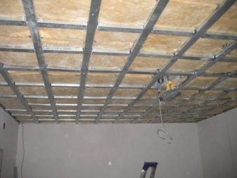 - Then along the perimeter a guide profile is attached. As a result, you get a "metal belt", which will be inserted into the main profile. It is fastened with screws to hangers that carry the load on the gypsum sheets. The ends of the profiles are inserted into the grooves of the guides. At the same time pay attention that the main profiles do not bend, check this level.