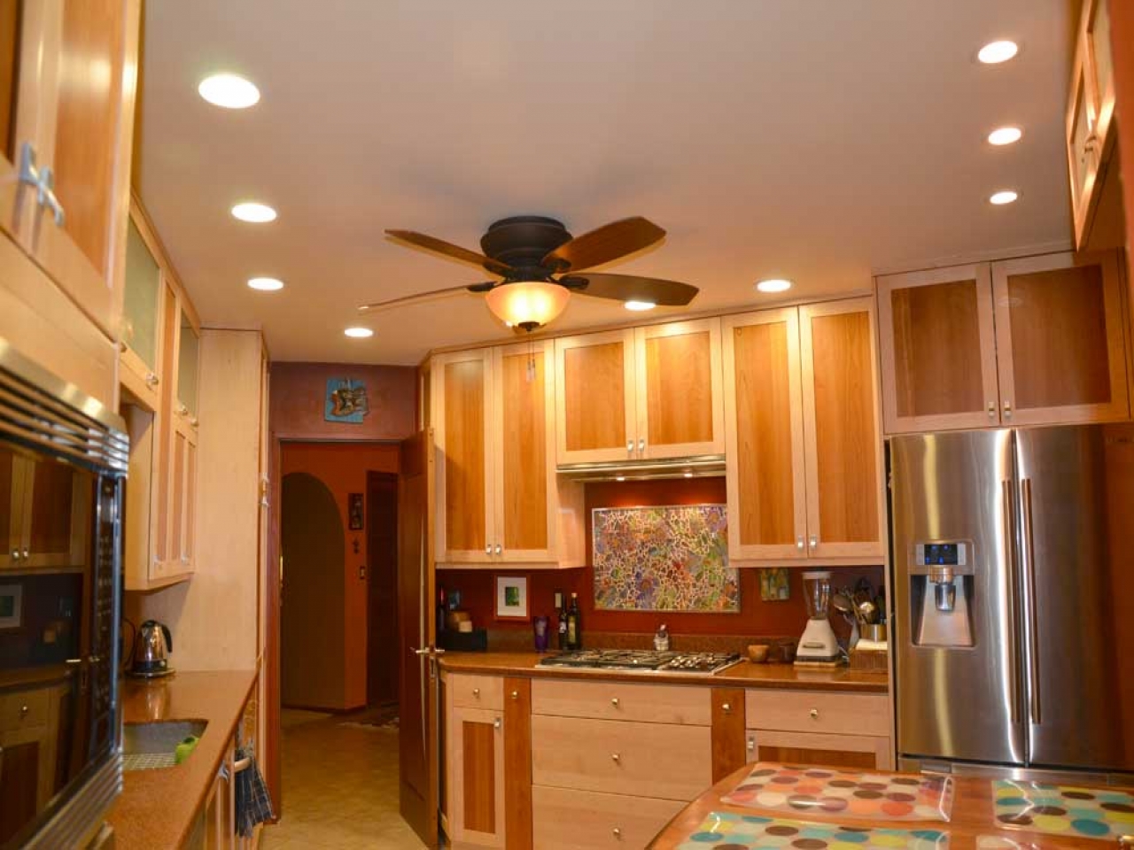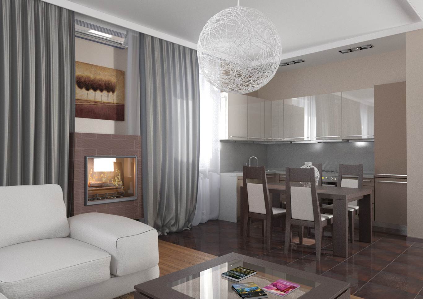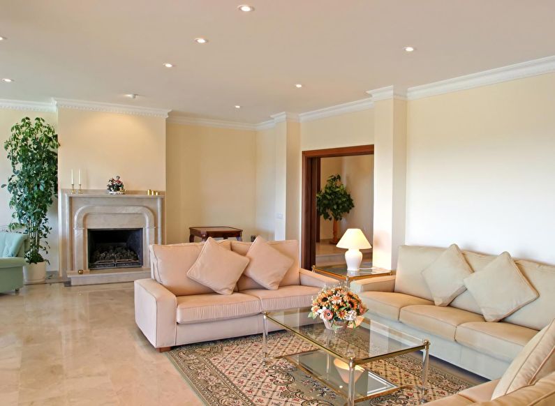 The most relevant in the single-level design will be spotlights or a standard chandelier.