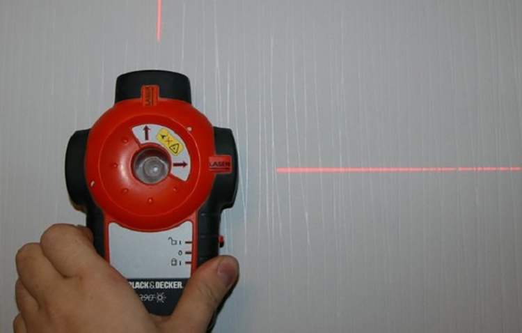 - Clean the ceiling from the remnants of wallpaper, old whitewash and putty, remove the chandelier and other lighting fixtures.Along the perimeter of the room, draw a line a few centimeters from the ceiling, along which you will mount the profiles. First, the suspensions for the main frame are mounted, for this you can apply a grid with markings to the ceiling and fix them with an equalizer at an equal distance from each other.