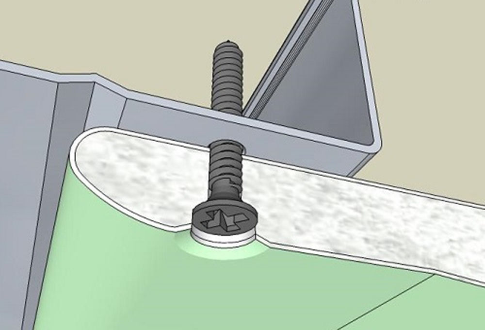 - The resulting fragments are screwed with screws to the main profiles. Screws must be screwed at an angle of 90 degrees and at least 1 cm deep into the profile for the fastening of sheets to be of high quality. Hats should be "drowned" by 1-2 mm inside the GCR sheet and then puttied. At the end, level the surface to an ideal condition by gluing the seams with reinforced tape and filling it with putty.