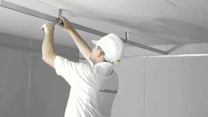 Installation of a single-level plasterboard ceiling, see the following video.