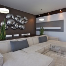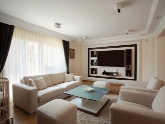 - The white color of the ceiling visually increases the space of the room., which in combination with large window openings will increase the openness of the space.