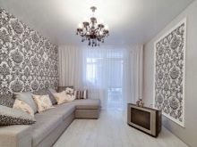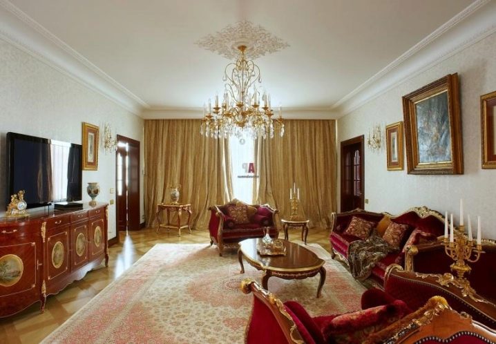 The interior is made in a classic style, successfully complemented by a white stretch ceiling with a matte texture, emphasizing the regularity and solidity,characteristic of the classics. But the glossy surface with highlights and reflections will be inappropriate here.