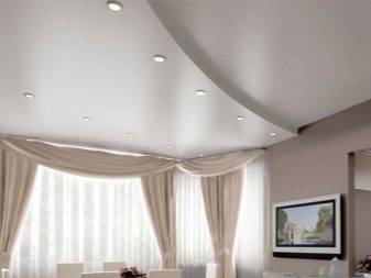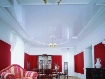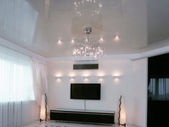 The use of white stretch ceilings in interior decoration is quite extensive. First of all, this is due to the fact that the white color, in the absence of stylized repair, almost always fits into the surrounding interior. In addition, in terms of its neutrality and relaxing effect, it has almost no competitors. But it can also be used in rooms that already have a certain specificity.