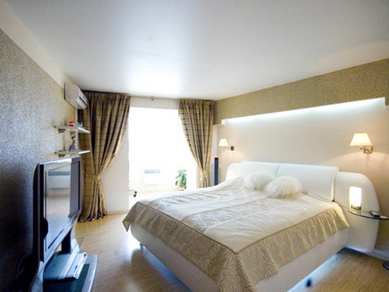 - Do not distract attention. White is perceived by consciousness as a symbol of neutrality.A white canvas does not switch a person’s attention to himself, as a result of which in such a room you can safely do your work without being distracted by an irritant. Also, the white ceiling does not compete with the rest of the interior, giving the opportunity to consider it in all its glory.
