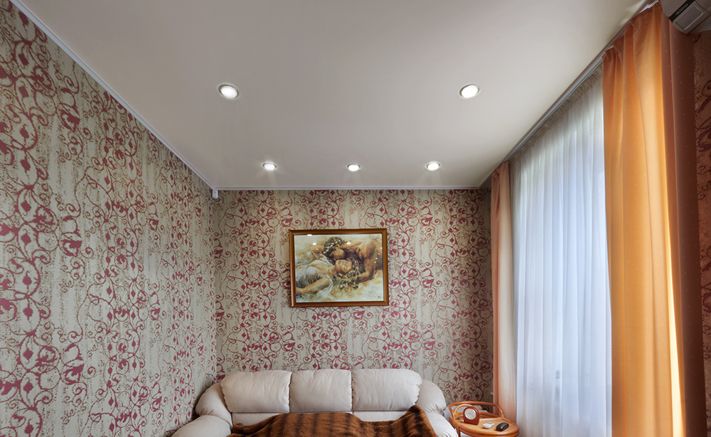 In a room with a low “crushing” ceiling, a white stretched canvas with a glossy texture will visually increase the volume of the room, thereby making it more pleasant and comfortable to stay indoors.
