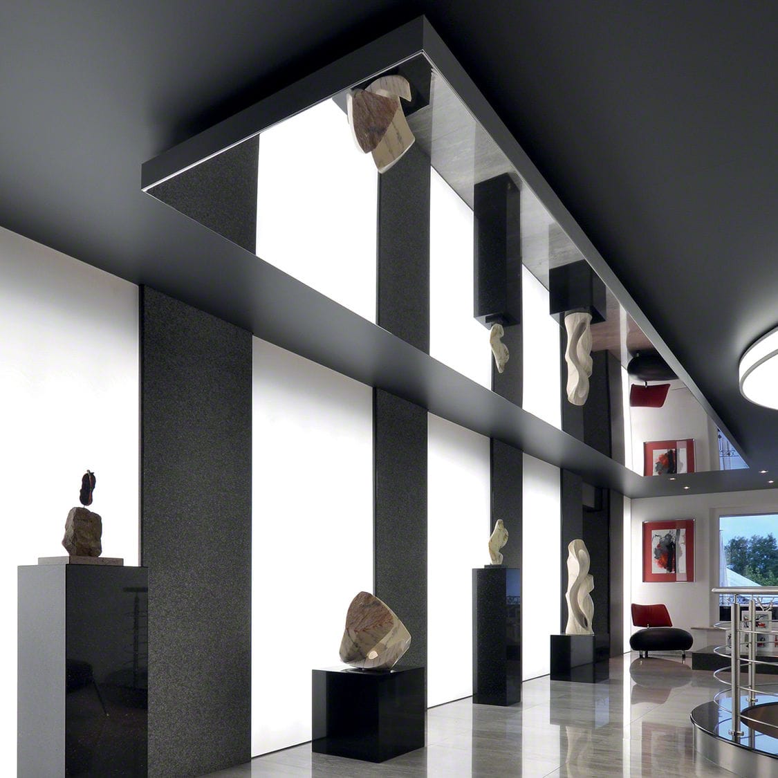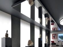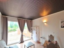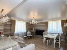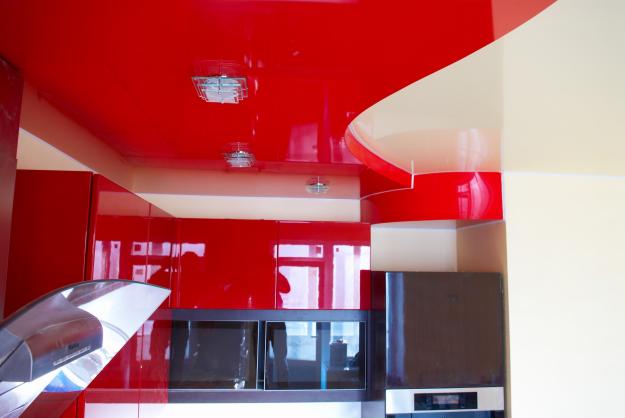 Ceilings can have a matte or glossy texture. Matte surface is universal. Such a ceiling can be made in a room of any height.The glossy ceiling creates a festive atmosphere in the room, adding solemnity to the atmosphere. It is believed that the shiny surface due to its reflective properties visually increases the height of the room. But as some consumer reviews indicate: too dark a color can create the opposite effect, and then instead of increasing the ceiling plate, it will crush by its mass.