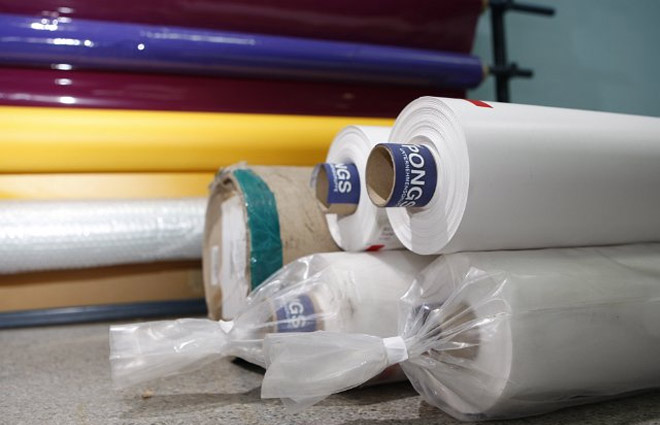 At the final stage, a high-quality material is obtained that allows air to pass through, which is light and fairly durable to tear. The mass of this fabric is about 200-250 g / m2, and the maximum width can reach 5 meters. PVC canvas is considered stronger and heavier.