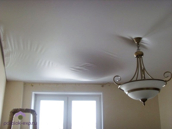- Fabric ceilings poorly hold moisture. They are considered to be “breathable”, that is, they allow air to pass through the existing micropores. However, these same micropores are not able to cope with the flow of water in the event of flooding. Therefore, if you live on the last floor, and your roof leaks, this option is not for you. In this case, it is worth choosing the option of a film web.