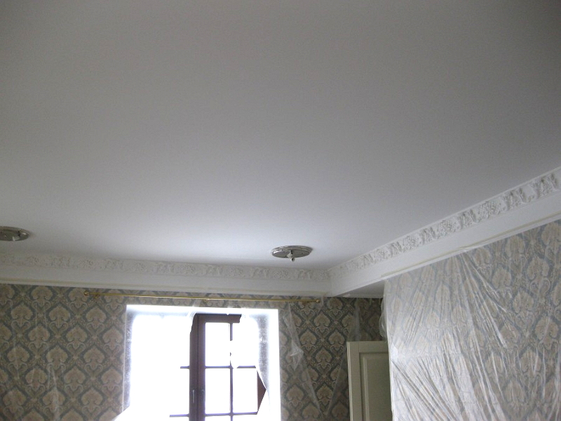 - If you install stretch ceilings made of cloth, it must be borne in mind that they stretch much worse than the film. That is why they are installed without heating. And this means that if the width of the surface being decorated is even slightly larger than the maximum five meters, then this option will have to be excluded.