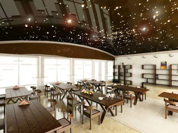 - Fabric ceilings can not be made glossy, and firms offer less ready color solutions in such an embodiment. You can order an individual design, but this will increase the final cost of the product.