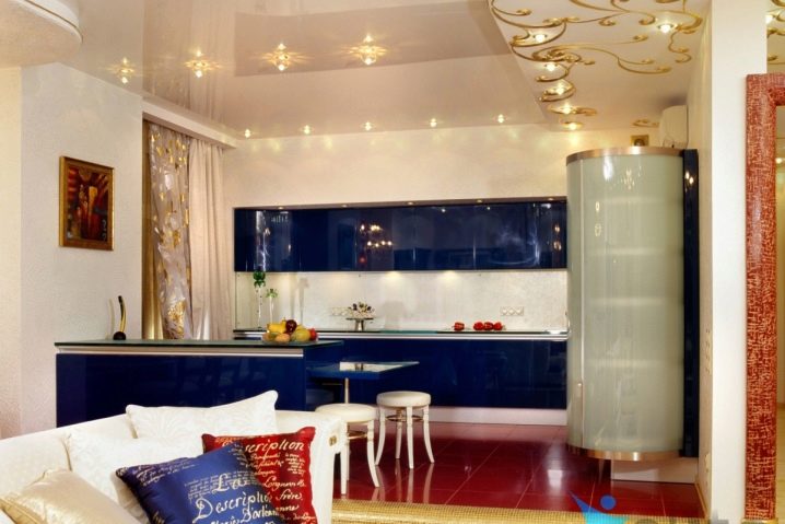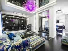 Stretch ceilings in the style of avant-garde - this is one of the most popular options for finishing the upper part of the room. Basically, these are glossy textures, bright and saturated colors, as well as non-standard shapes.. Avant-garde is a manifestation of violent fantasy, including at the stage of finishing the ceiling.