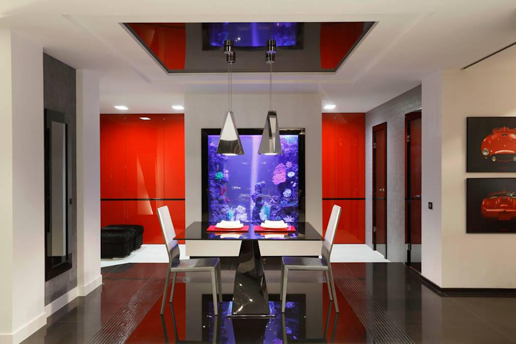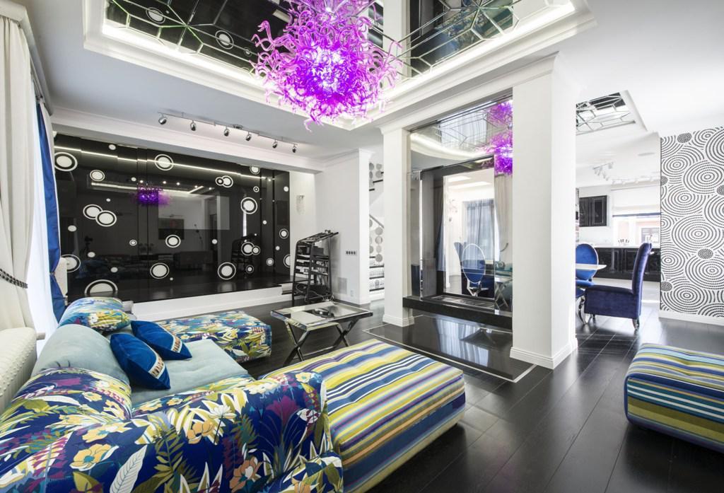Kitsch is a manifestation of boldness, crazy ideas and special eccentricity. Glossy and mirror stretch ceilings fit harmoniously into this interiorsupporting the general direction.