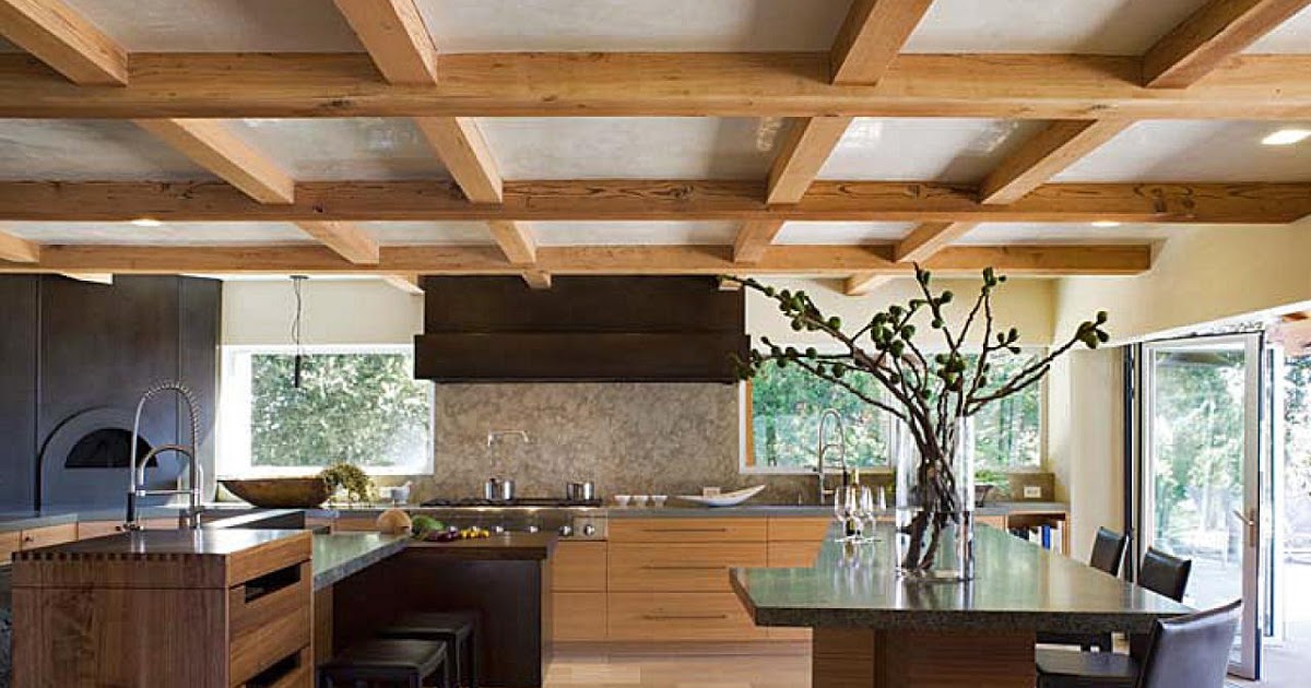 To give greater “naturalness” to such a ceiling will allow the use of large wooden beams, which have a rough finish and a natural shade.
