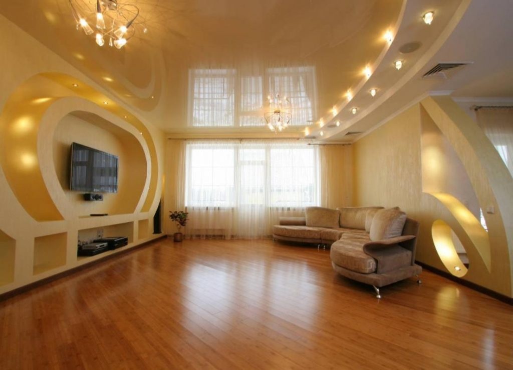 Matt coatings require a large floor area if available.. At the same time, such surfaces are often lacking in volume, which is easily compensated by the installation of small spotlights.
