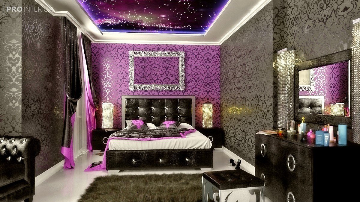 For this style, you can choose a solid ceiling, for example, pink, burgundy or classic cream.