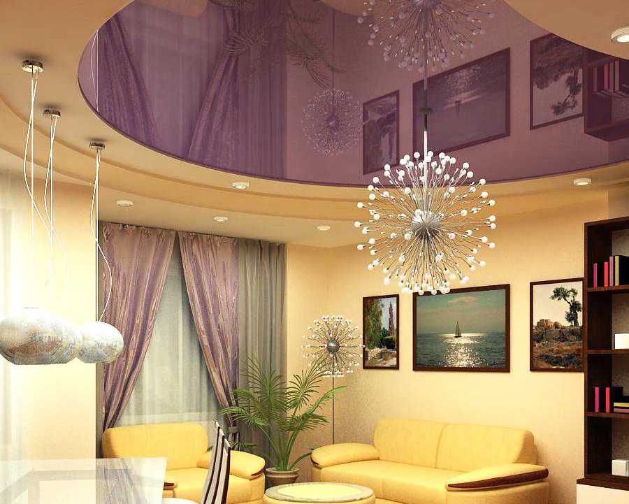 Stretch ceiling - this is a continuation of the design, so its color must necessarily overlap with the other elements of the interior, and the color to match the overall color palette. With partial repair and design only the ceiling to make a choice in favor of a color is simple. It is only necessary to build on the existing furniture, decorative elements and color characteristics of the room.
