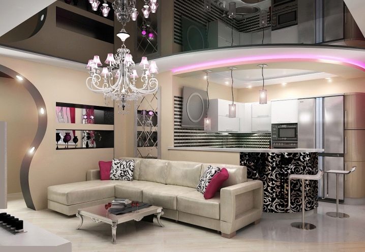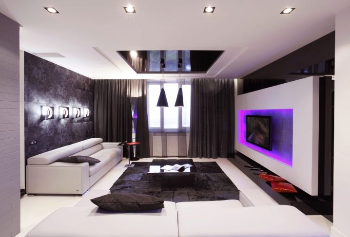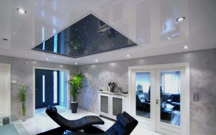Stretch ceilings can not act as an independent element and always correspond to the overall focus of design in terms of colors, textures and shapes. This option should be an integral part of the interior, most often a "white canvas", which allows you to direct all attention to the design of walls and floors.