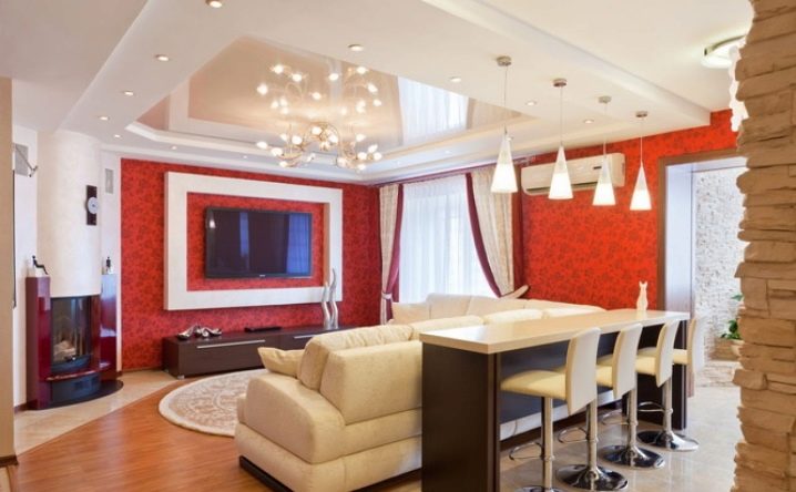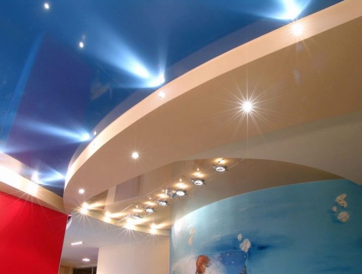 Often, the suspended ceiling acts as a bright accent in the interior, but this is a more complicated option that requires careful preparation and development of a design project for the entire room.