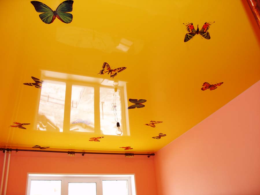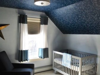 - for bedrooms and nursery it is better to opt for the calm pastel shades of the ceiling;