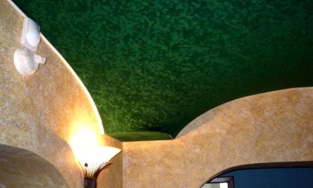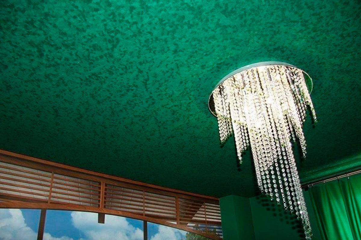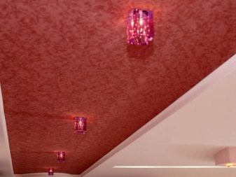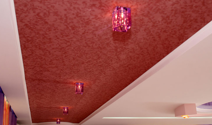 If you wish, you can create the desired texture of the stretch ceiling with your own hands. To do this, use special textured paint. Of course, only textile canvases are subject to dyeing.