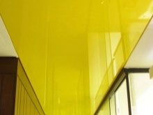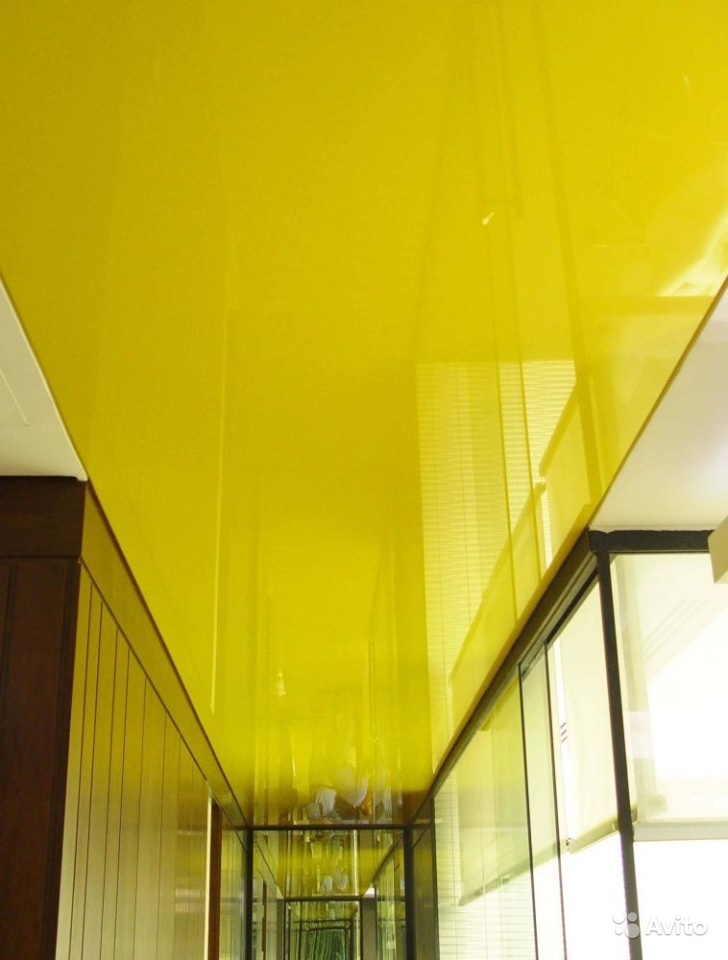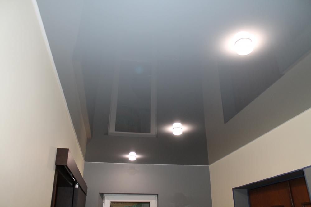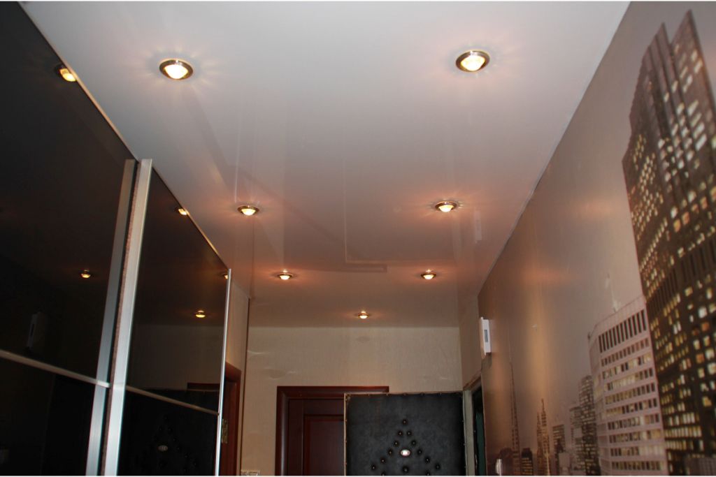 In the hallway should be installed glossy stretch models. They are easy to clean and visually increase the size of the room.