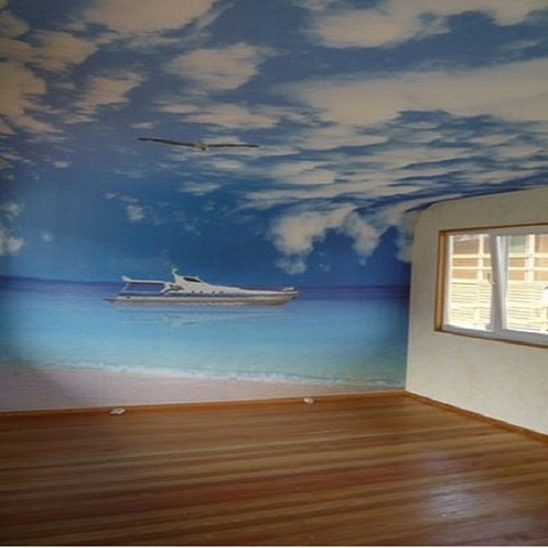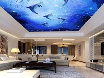3D ceilings can achieve maximum realism of the picture. Living in a city apartment, you can feel like a vacationer in nature. It is enough to print a window with a sakura branch on the ceiling. Seascapes will help to relax and forget about anxiety. How nice to look at the meadow with beautiful flowers, which ask them to pick them. And how nice it would be to stroke splashing dolphins jumping out of the ocean.