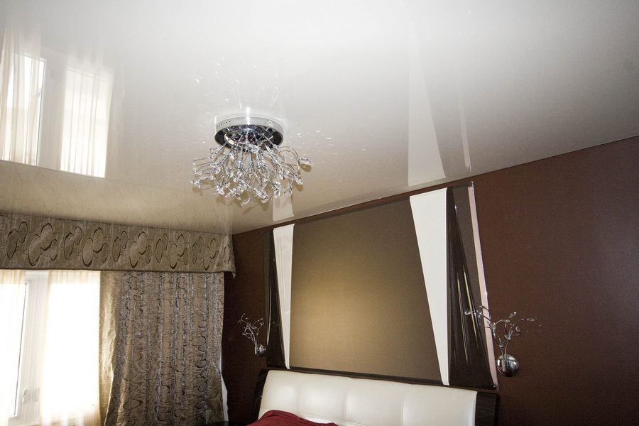 For the bedroom it is better to choose a matte or satin PVC ceiling, as well as fabric. This type will not reflect the sun and will create a feeling of comfort.Do not, of course, forget that the fabric ceiling will cost you much more than PVC film.