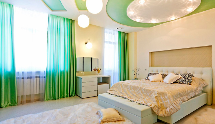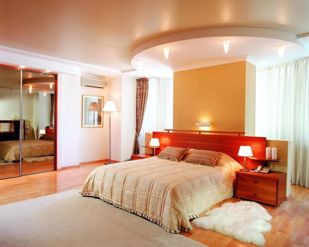 Two-level ceilings allow you to combine matte and glossy surfaces, to combine two or more colors. Such ceilings can visually increase the height of the room and highlight the taste of the owner.Two-level ceilings are used in rooms that need zoning. First everything is a bedroom.