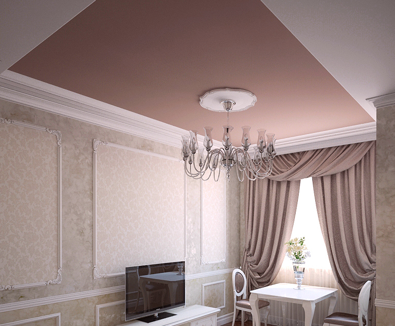 - The white version is a classic and will suit any interior. Brushed ceiling will look great in the living room in the style of the country, the Renaissance.Glossy is suitable for a room in an antique style.