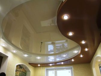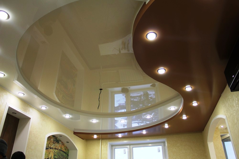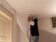 In some cases, this is the most optimal solution, since the alignment of the ceilings also lowers them by a few centimeters. With the help of a tension coating, you can hide the defects and eliminate irregularities of the ceiling.