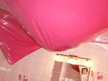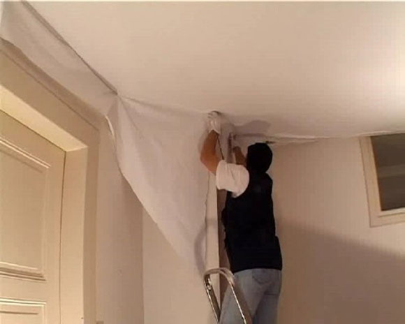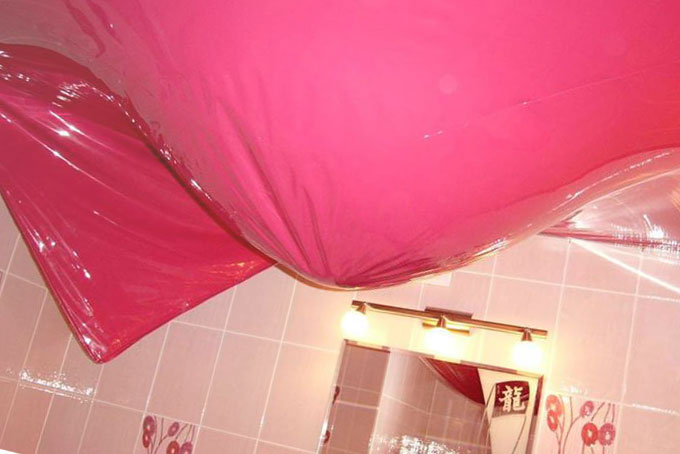 - When flooding neighbors above. In this case, there is a deep slack. Forms a huge bubble filled with water. PVC-linen perfectly copes with this situation; it can hold water and protect the room from flooding.