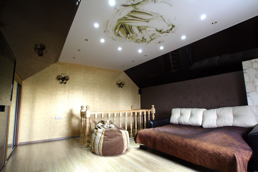 Not all city apartments can boast a ceiling height of 260 centimeters. Many of them do not even reach the threshold of 230 centimeters.Having a low enough room, you hardly want to clutter it with a suspended ceiling. It is important to note that by choosing your fabric, you can “eat” at least from the height of the room.