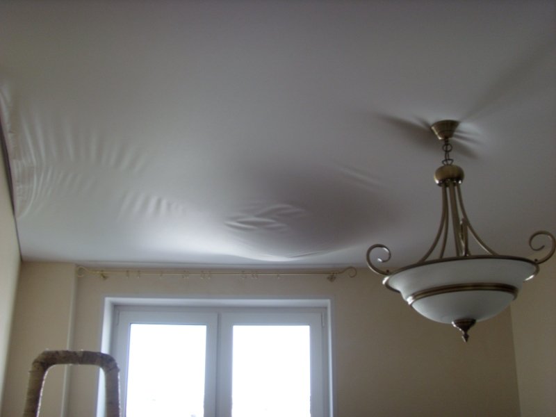 - poor installation of the ceiling was carried out. Most often this happens if the tension cover was installed independently. The reason is the most common.