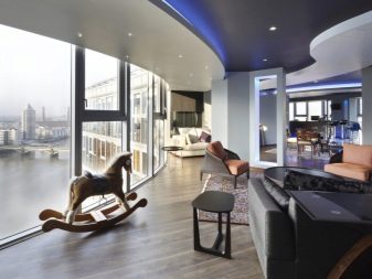 The design of the volumetric ceiling has many advantages, which are deprived of other options for decorating with paint, wallpaper, plaster and other finishing materials.