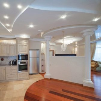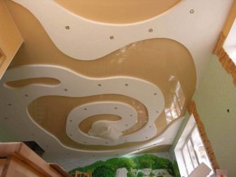 The ceilings of the above type look original and stylish, despite the fact that this method of decorating is not new. Drywall, which serves as the basis for the box, has a number of features and advantages. Thanks to them, designers and craftsmen from the field of repair make a choice in favor of this lightweight and practical building material.