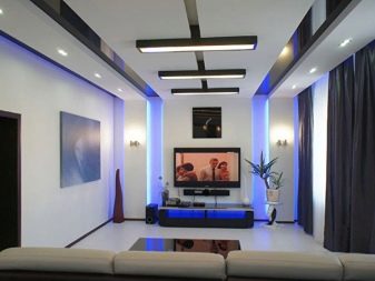 In the niche of the drywall frame, you can easily hide the wires. It is also possible to install lighting fixtures of various sizes. In addition, under the design of the ceiling securely hide the wires of cable TV and the Internet.