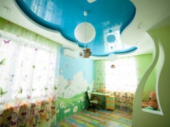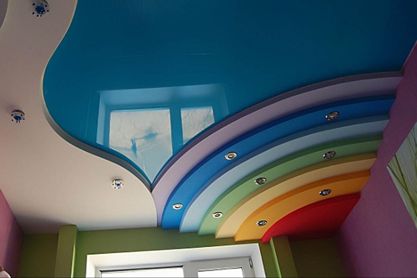 - Children's. For the arrangement of the room of the child or teenager choose light colors that are in harmony with the bright colors. Listen to this rule when choosing a stretch ceiling on a drywall construction. The most popular saturated colors are pink, blue, green, orange, yellow. Among light colors such palette is common: white, light gray, beige, milky.