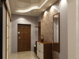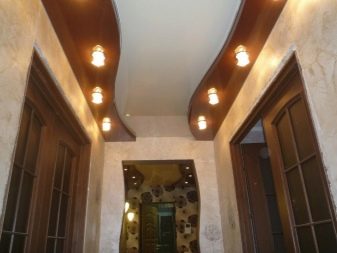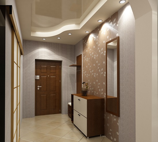 - Entrance hall. The interior of this part of the apartment creates a general impression of the house. It is advisable to make a choice in favor of single-level frames with a light canvas. The color of the stretch fabric or film should be a few tones lighter than the color of finishing materials and furniture in the hallway.